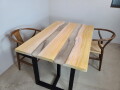 タイトル「標高1,000mm」まるで高山にある池のような雰囲気があるレジンテーブルです。ケヤキを白っぽくなるよう漂白し、風雪に耐えた木材のような木目を引き立てる加工「浮造り」をしました。 レジン部分には、白樺、ホワイトシダー等を封入し、奥行き、立体感を演出いたしました。 明るいイメージのダイニングテーブル、カフェのような雰囲気を演出してくれる作品です。